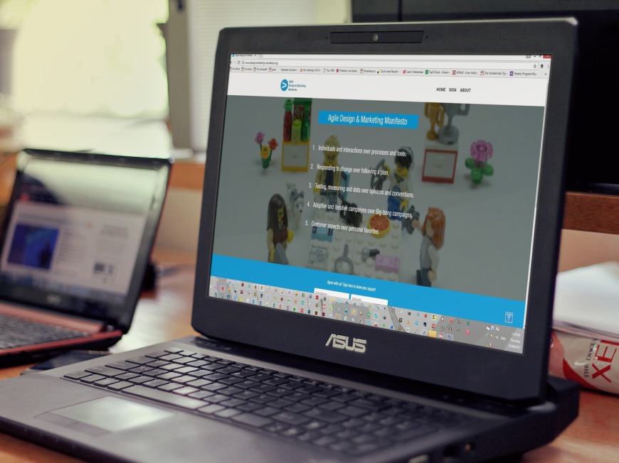The Agile Manifesto, a verbal presentation of the Agile mindset, is not only applicable for Software development and IT, but also Design and Marketing. Here is our version (www.designmarketing-manifesto.org). This also includes the Design Thinking approach.